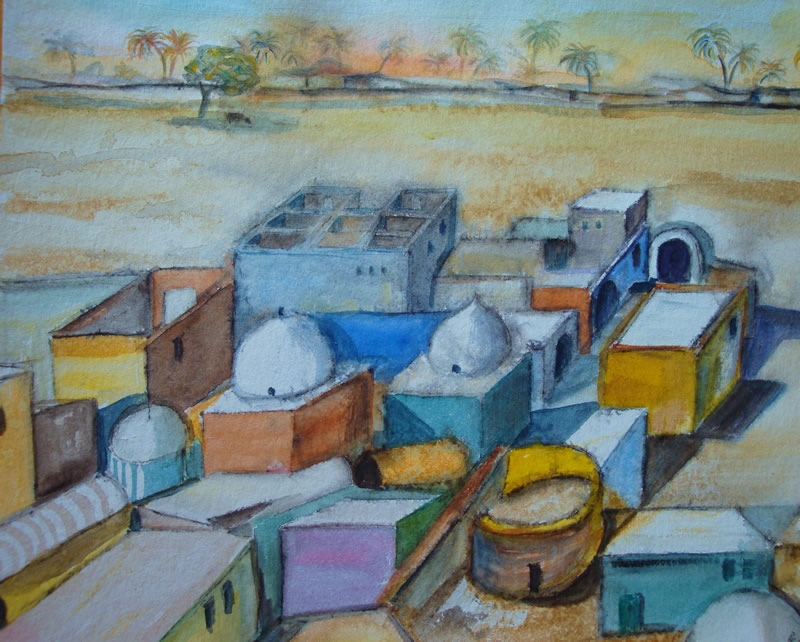 Nubier Dorf, Aquarell