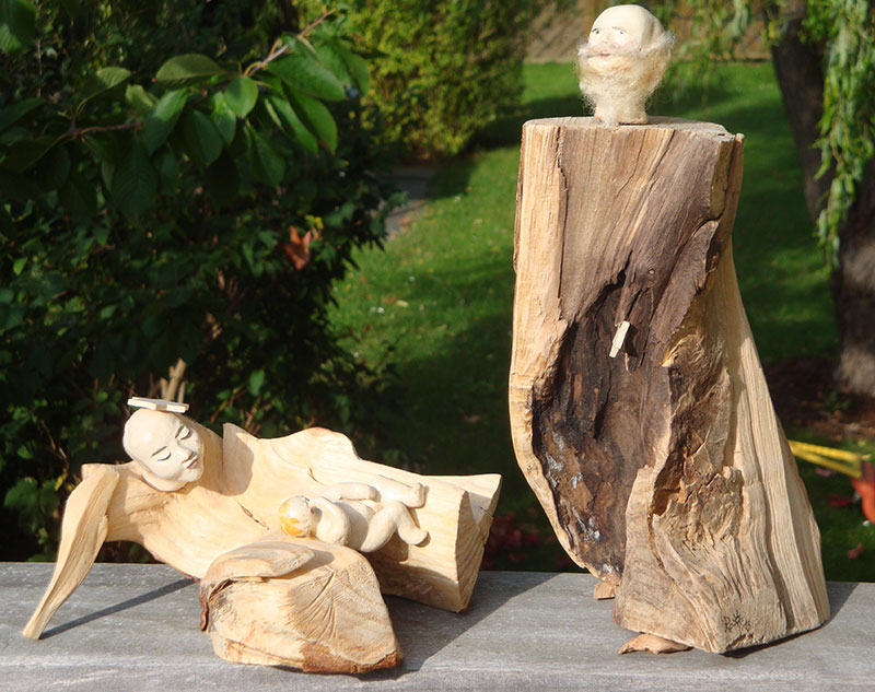Heilige Familie, Holz, Keramik, 32 cm hoch